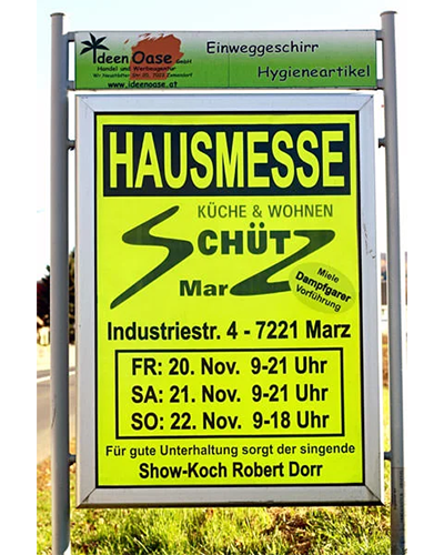 Mit unserer Straßenwerbung bieten wir Ihnen eine sinnvolle Möglichkeit, Kunden in Ihrer Umgebung anzusprechen.